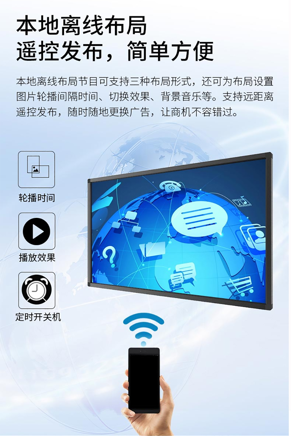 分區(qū)分組管理模式,采用分布式管理,支持遠(yuǎn)程或本地遙控器控制,管理方式多樣化,讓用戶輕松管理大量播放終端。